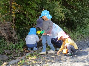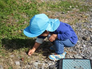 虫探しをして、草の生えてるところを探してみたり、