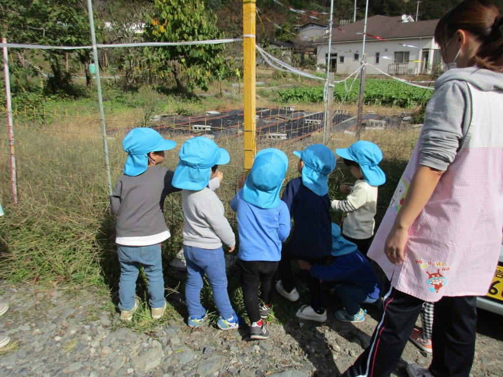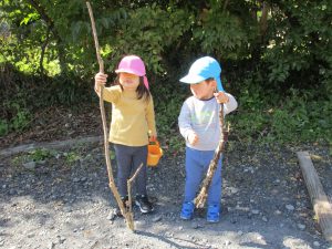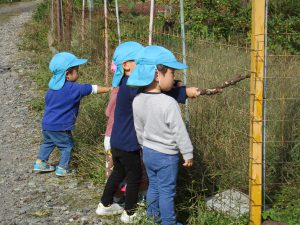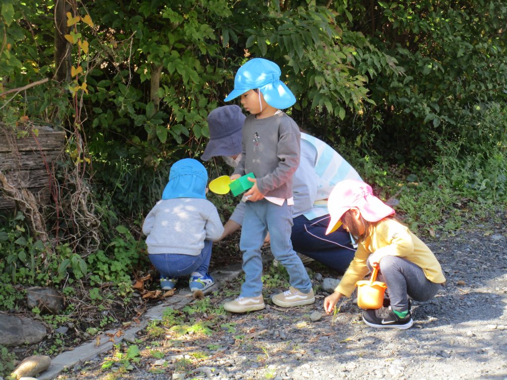 後から2歳児さんも気が付いて木の枝でつついたりしていました💦