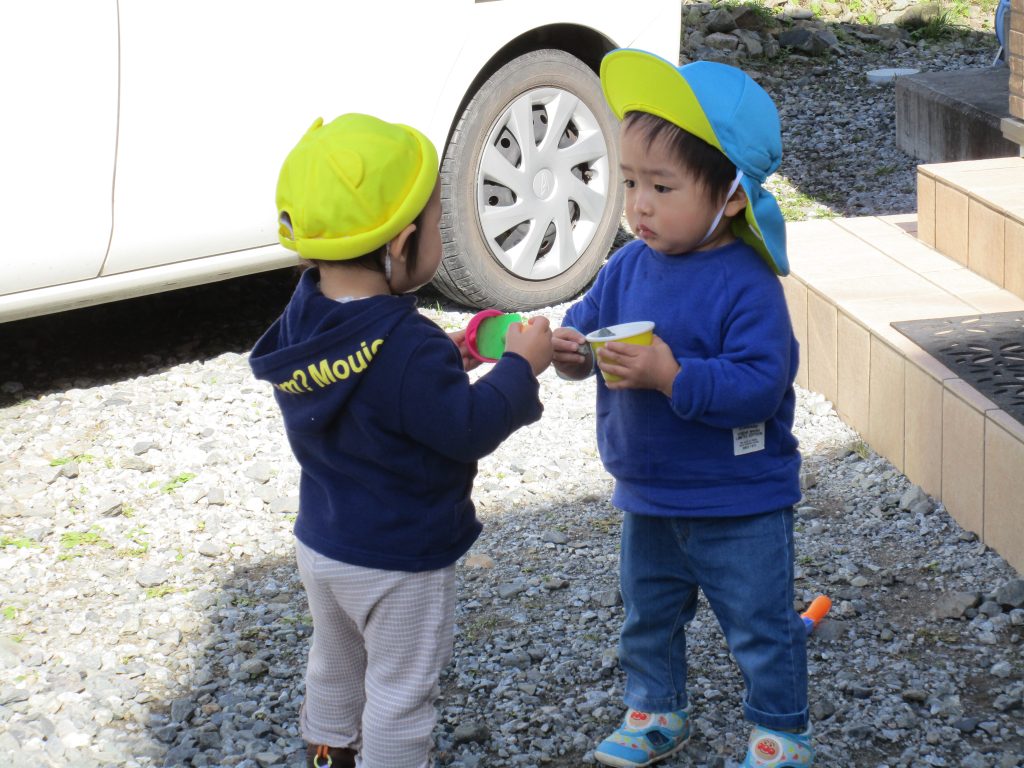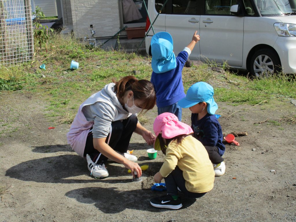 土をたくさん詰めてチーズケーキを作ったりしていたお友達もいました(*^▽^*)