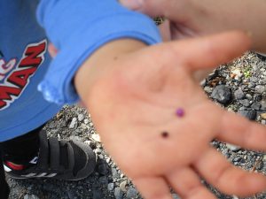 小さな石を容器にたくさん集めてポップコーンを作ったり、