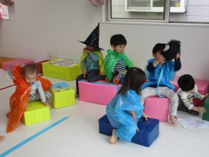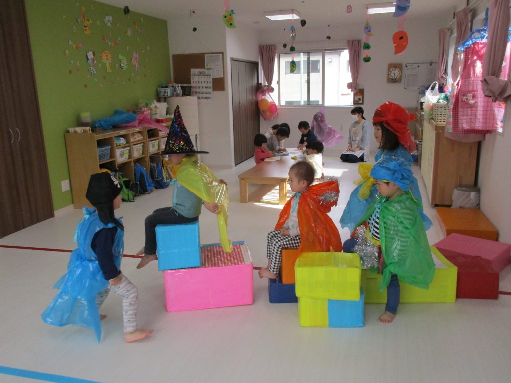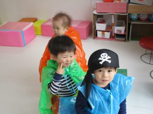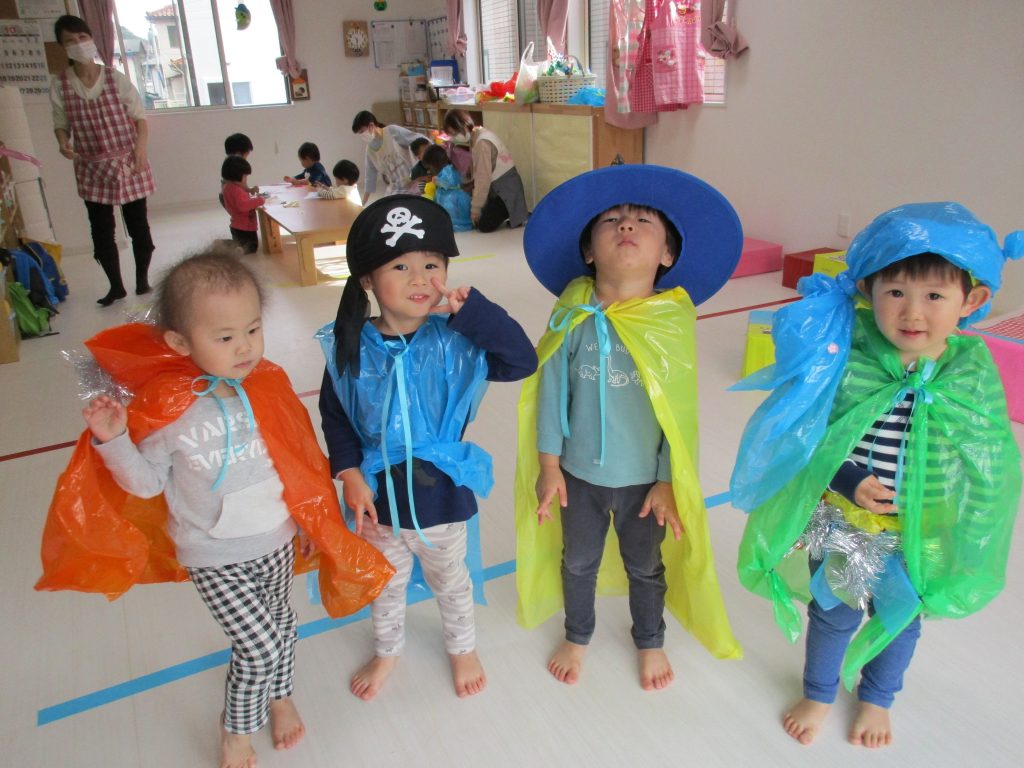 1・2歳児さんは明後日のハロウィンに向けて衣装合わせをしてみました👕