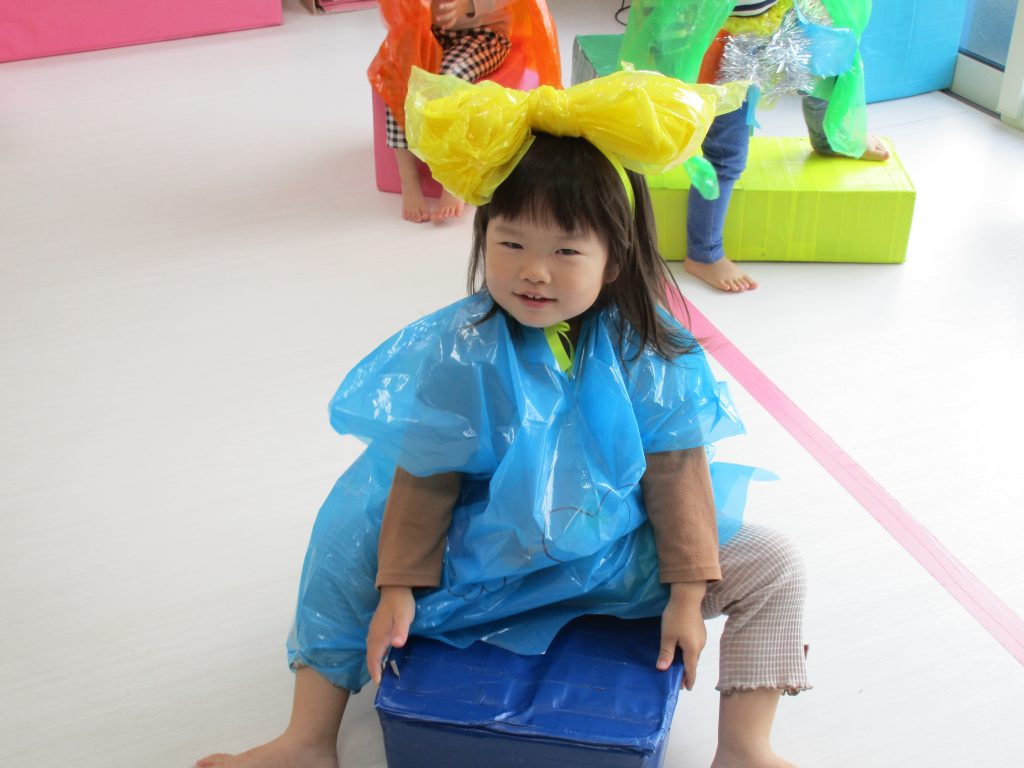 2歳児さんは大喜びで好きな色や形を選んで先生に着せてもらい大満足!!