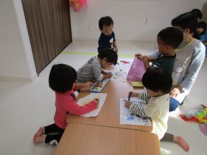お絵描きがしたいと、みんなでお絵描きして遊びました(^_^)