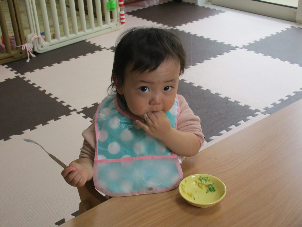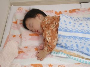 日中の写真が撮れなかったので、給食の様子とお昼寝の様子です!!