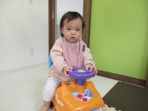 0歳児さんはお部屋で乗用玩具で遊びました!!