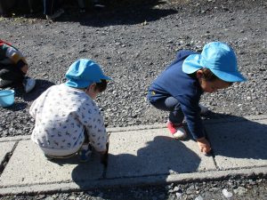 外に出る前から「虫探しする~」と張り切っていた2歳児の男の子です(^_^)
