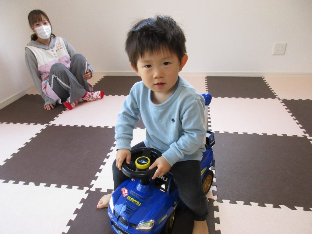 0歳児さんはお部屋で乗用玩具で遊びました!!