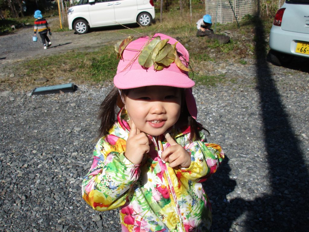 枯れ葉を使って冠を作ってもらい喜んでいました(*^▽^*)