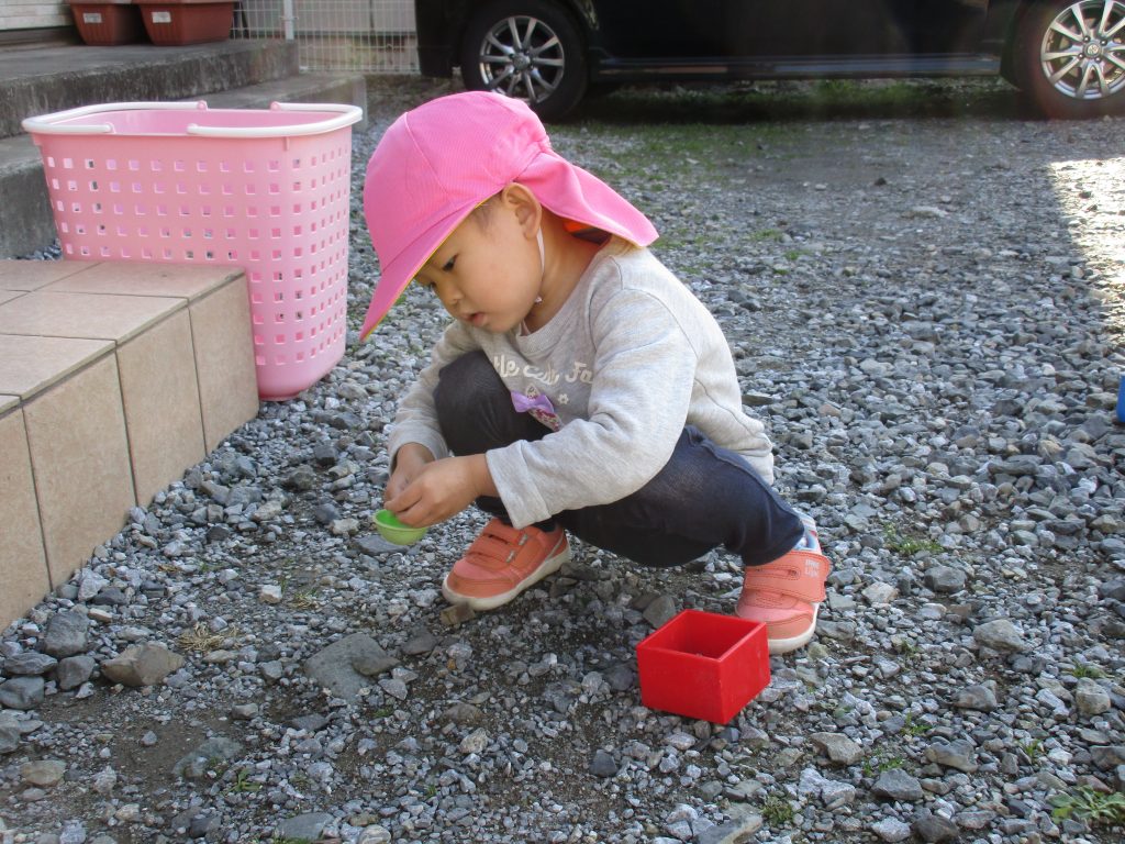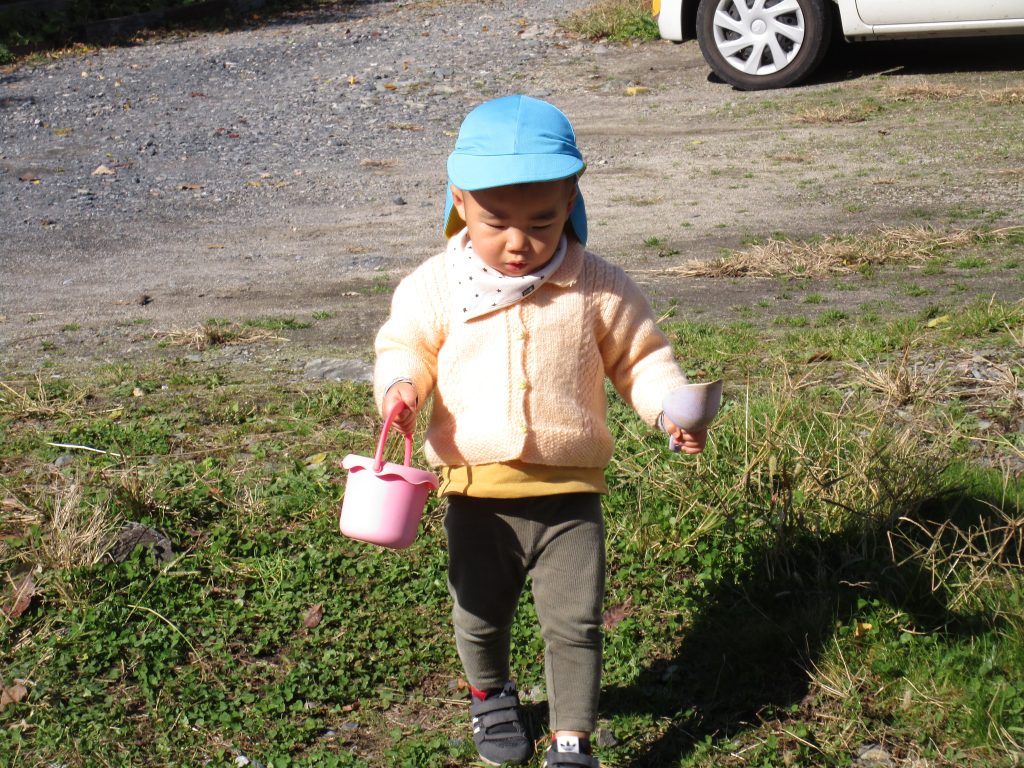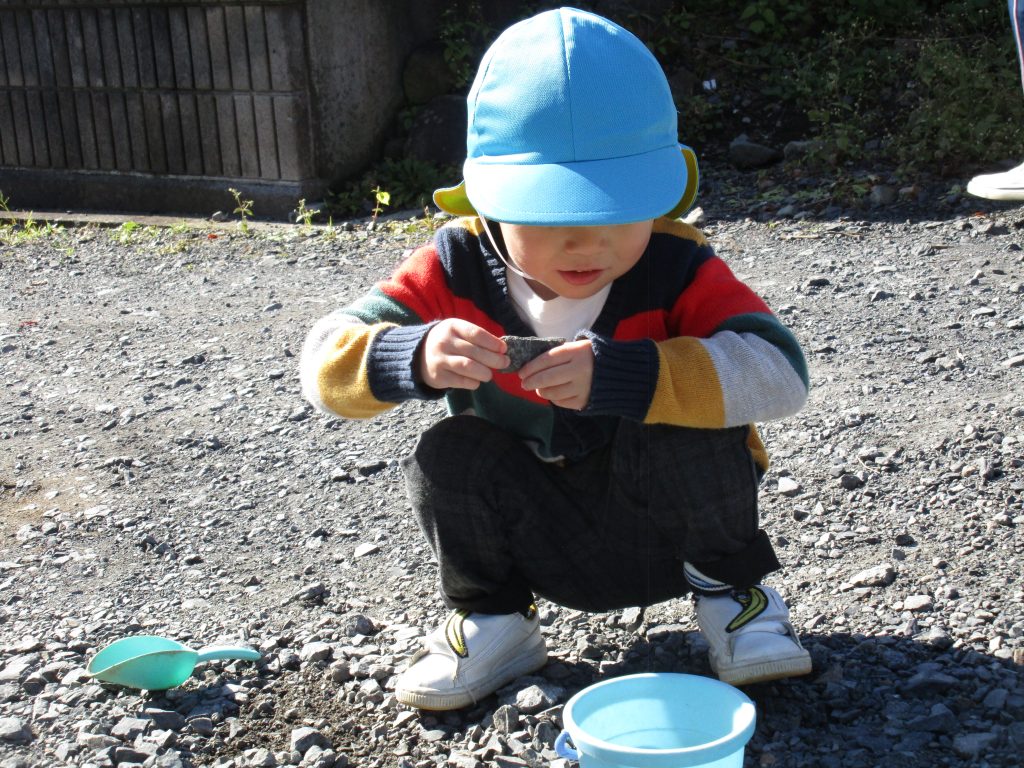 外に出る前から「虫探しする~」と張り切っていた2歳児の男の子です(^_^)