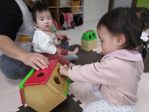 型はめに興味を持ち、先生と一緒にやって楽しみました(*^_^*)