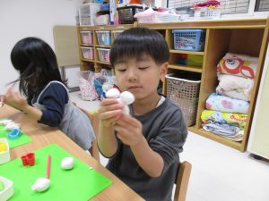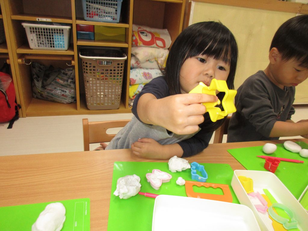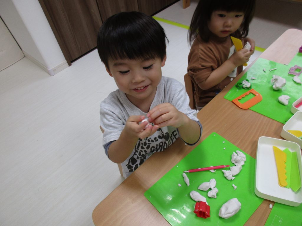 粘土ベラを使って何となく切ったりしている姿が見られました(*^_^*)