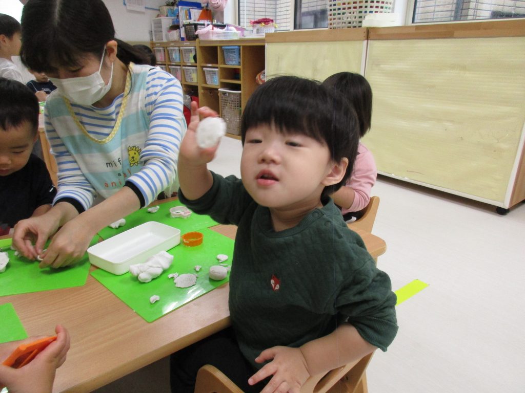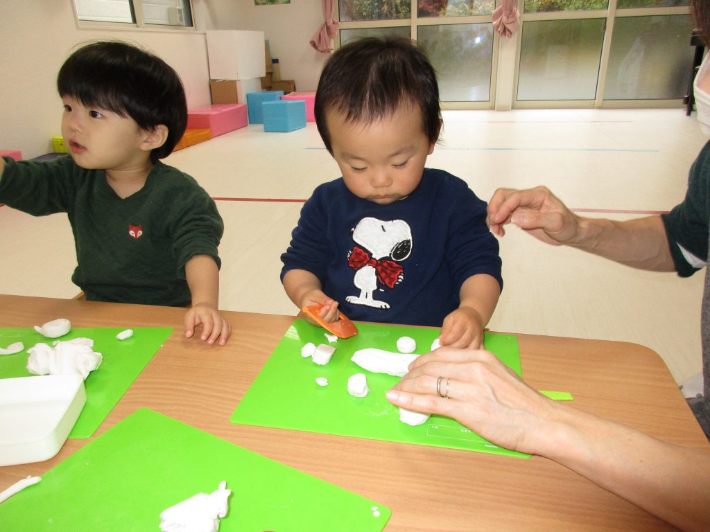 1歳児さんは自分で形を作るのはまだ難しいようですが、