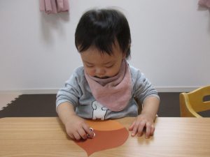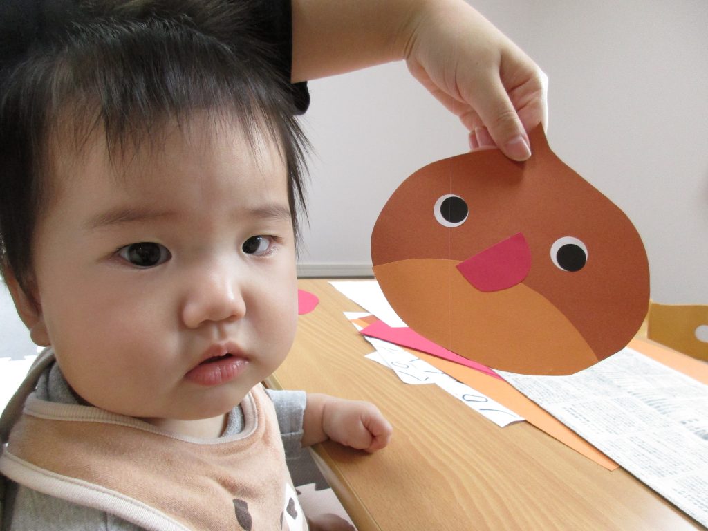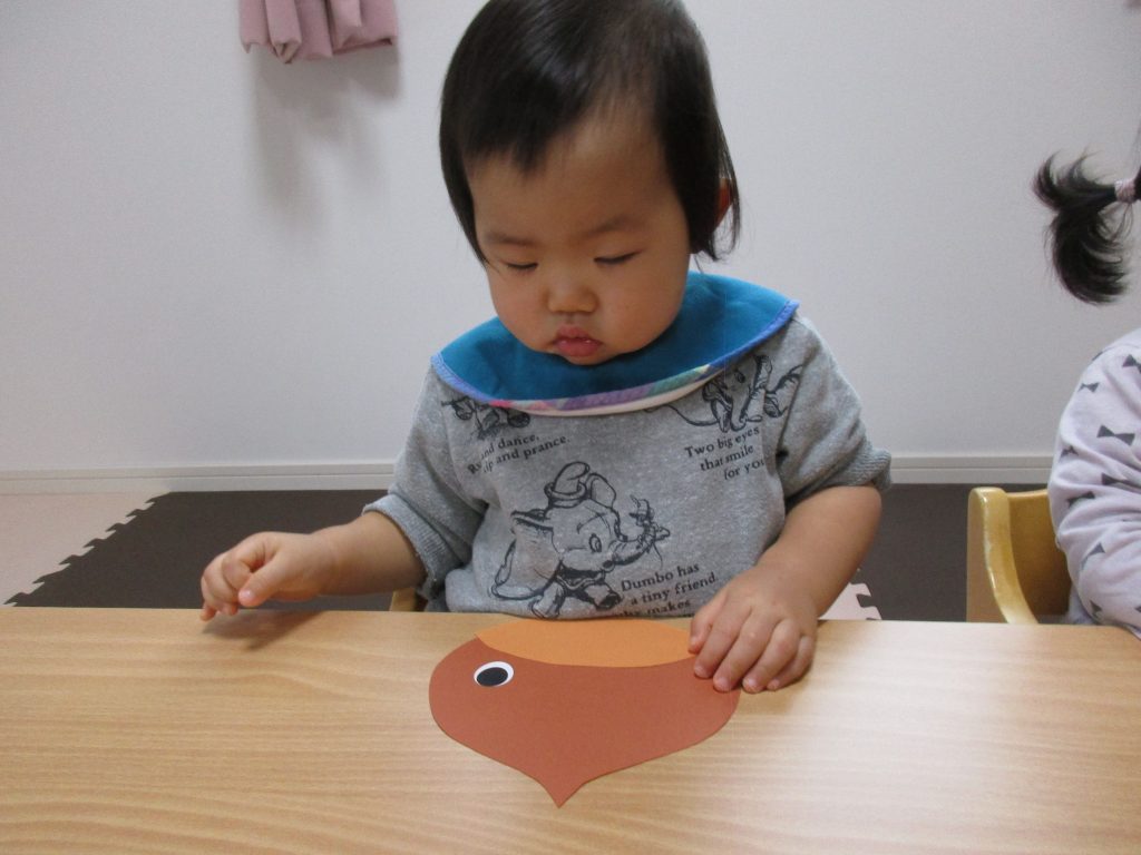 0歳児さんは秋の製作をしました!!