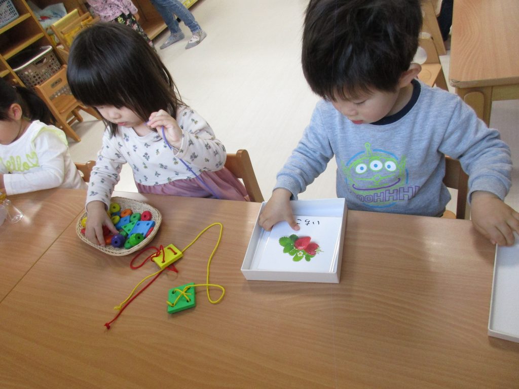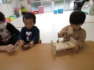 1・2歳児さんはモンテッソーリ教具でお仕事をしました!!