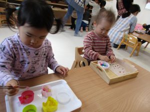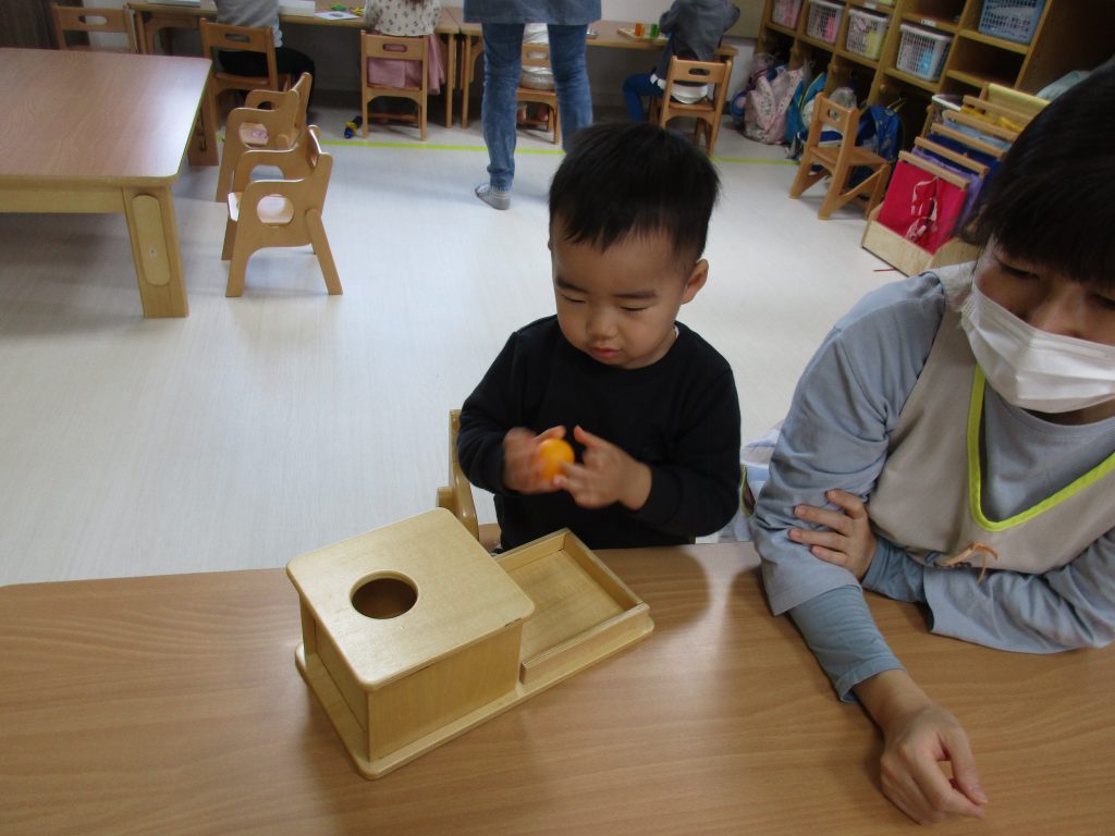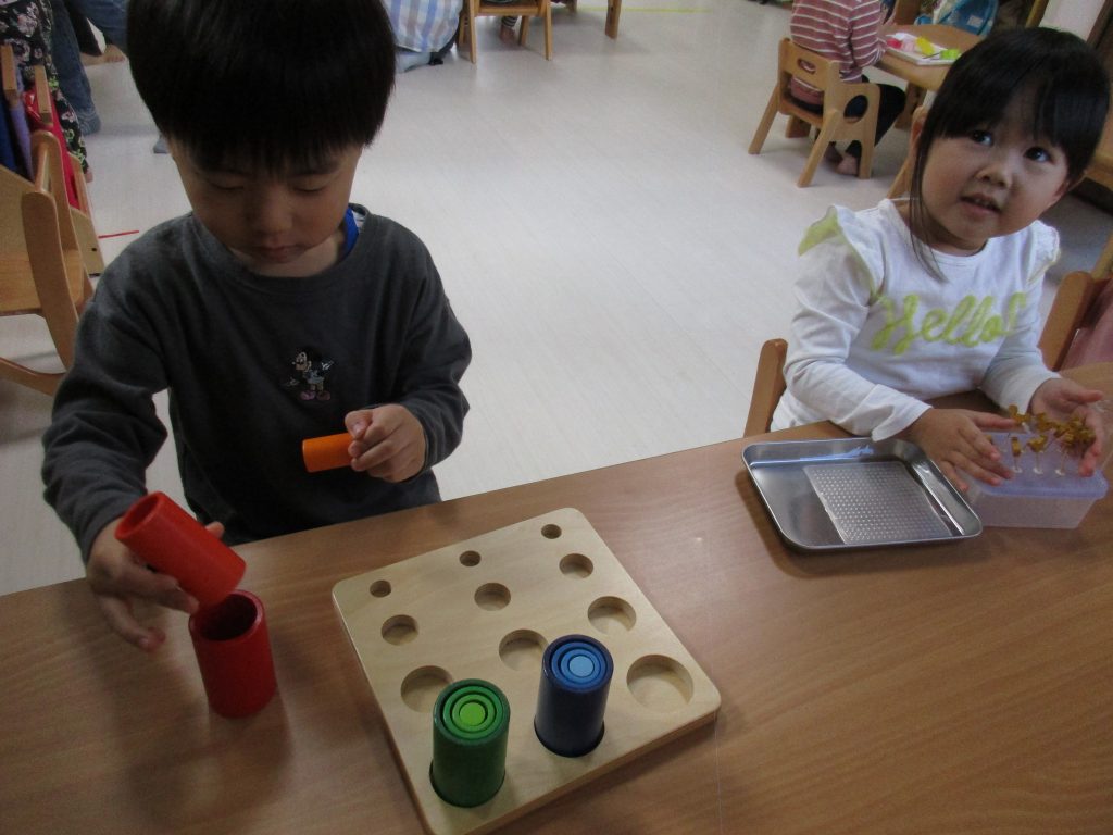 1・2歳児さんはモンテッソーリ教具でお仕事しました(^_^)