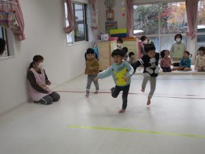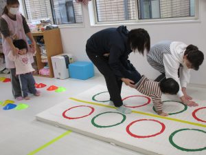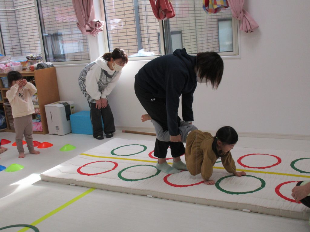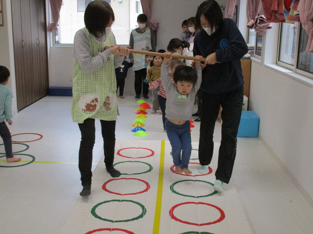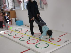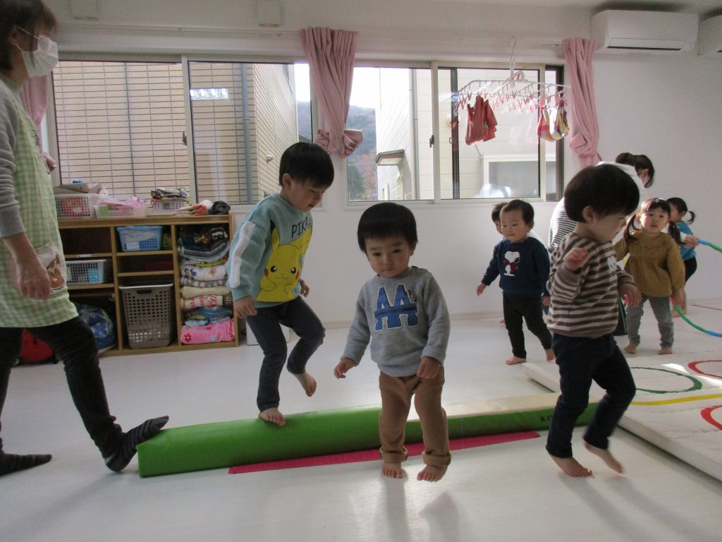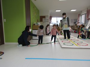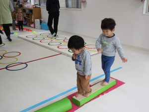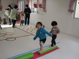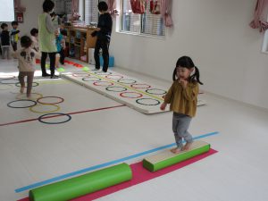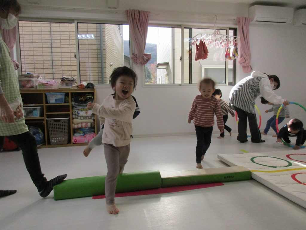 平均台やニョロニョロ動く紐を飛び越えたり、何度も繰り返しました(^_^)