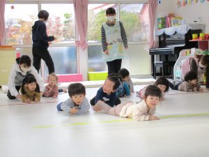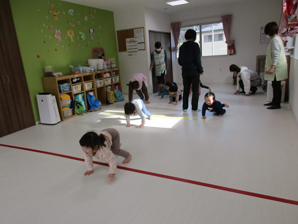 四つん這いで進んだり、ずり這いしたり、