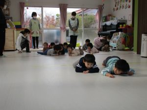 動物の模倣運動では色々な動物の動きを表現して