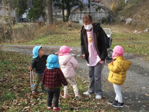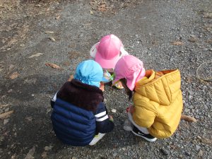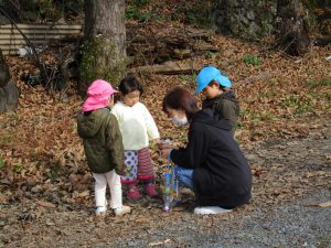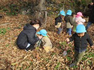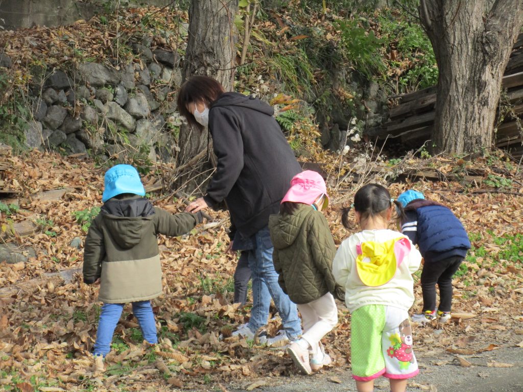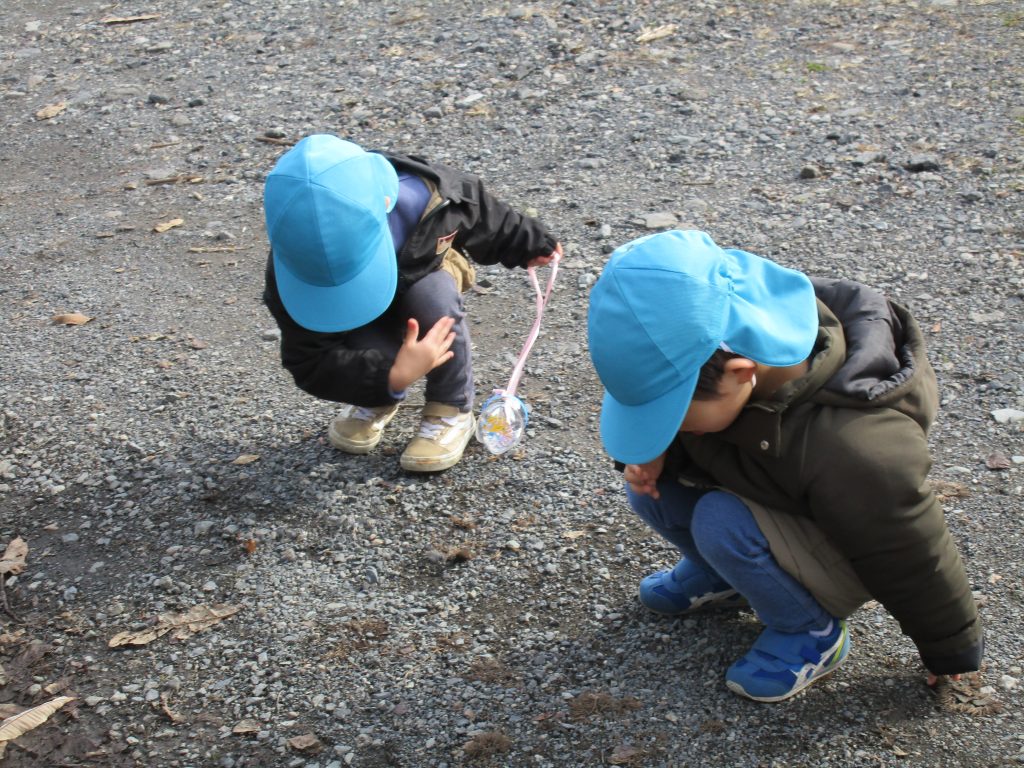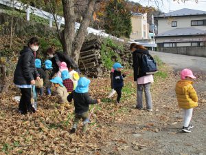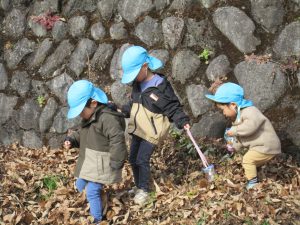 枯れ葉を拾ったり、石を拾っていたお友達もいました!!