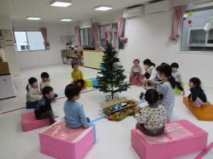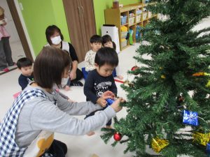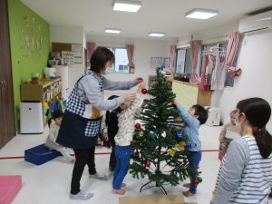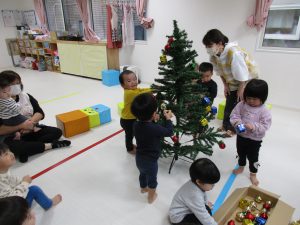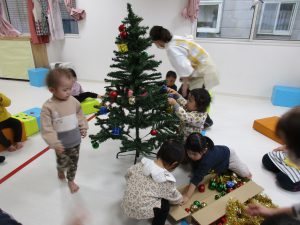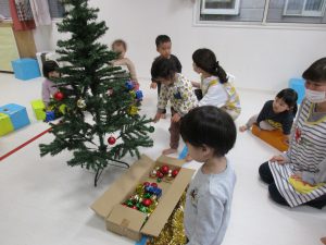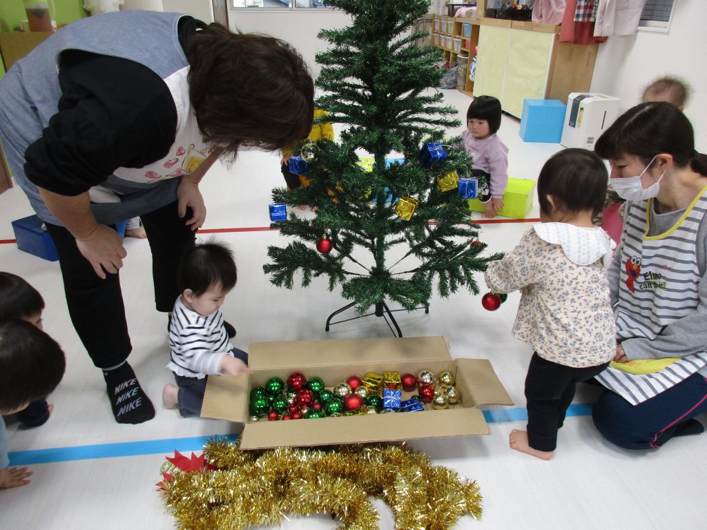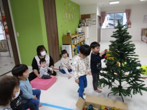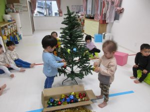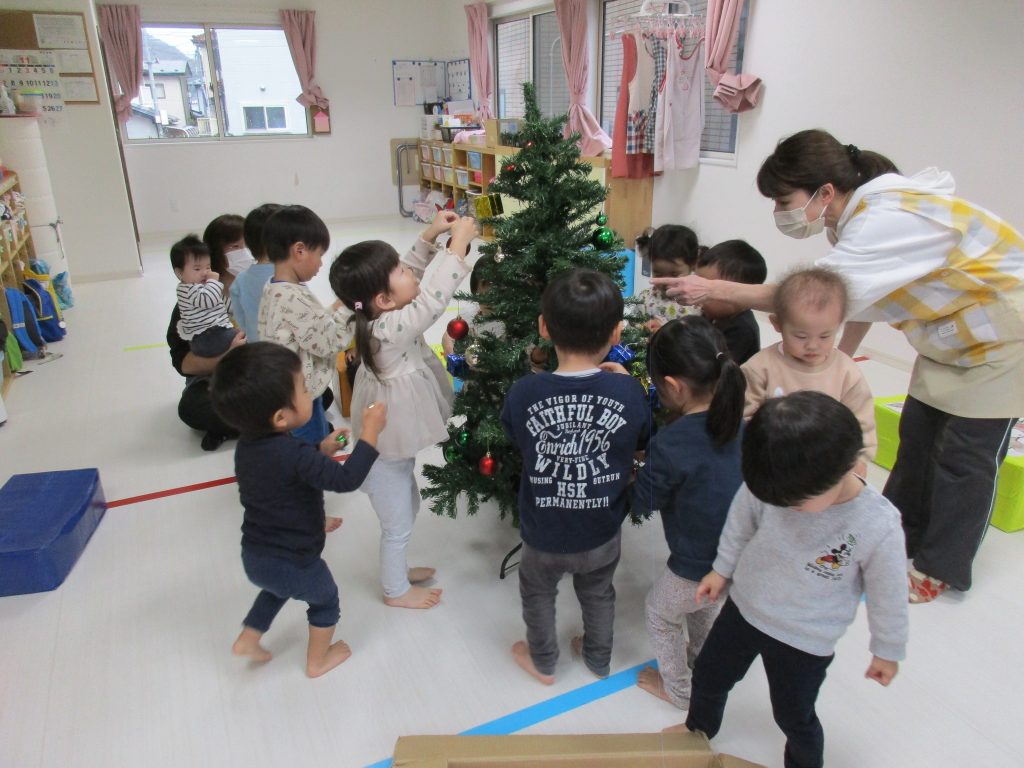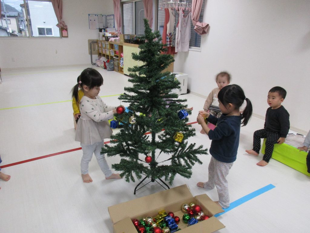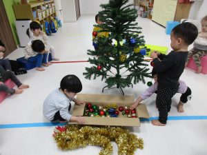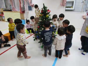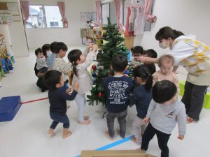 今日は保育園でもみんなでクリスマスツリーの
