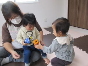 0歳児さん、今日は2人だけだったのでお部屋でゆったり過ごしました!!
