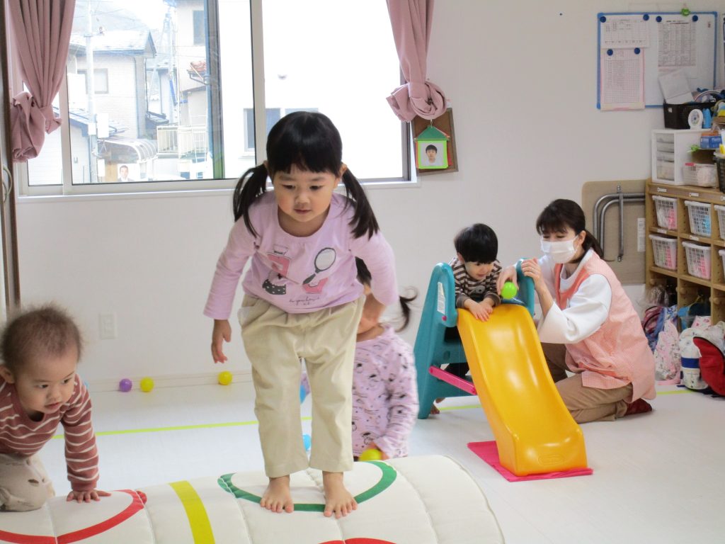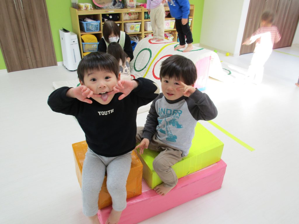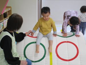 2歳児さんにはマットのお山が人気で、