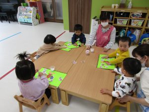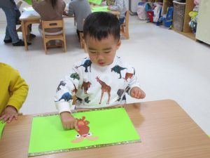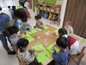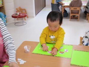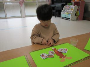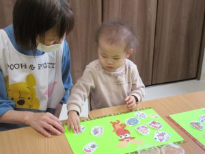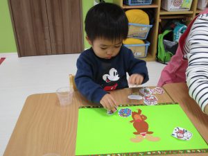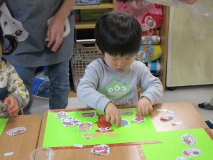 2歳児さんはバランスを取りながら上手に貼っていました(^_^)v