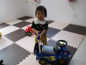今日は0歳児さんはお部屋で乗用玩具などで遊び、