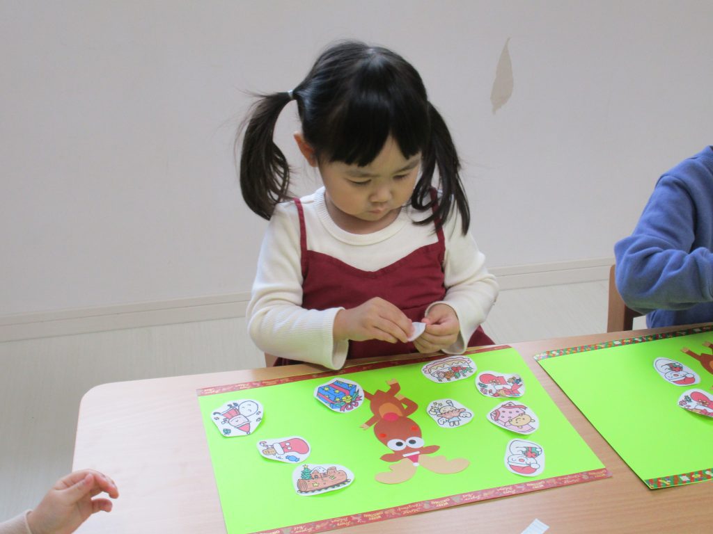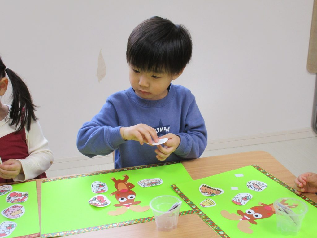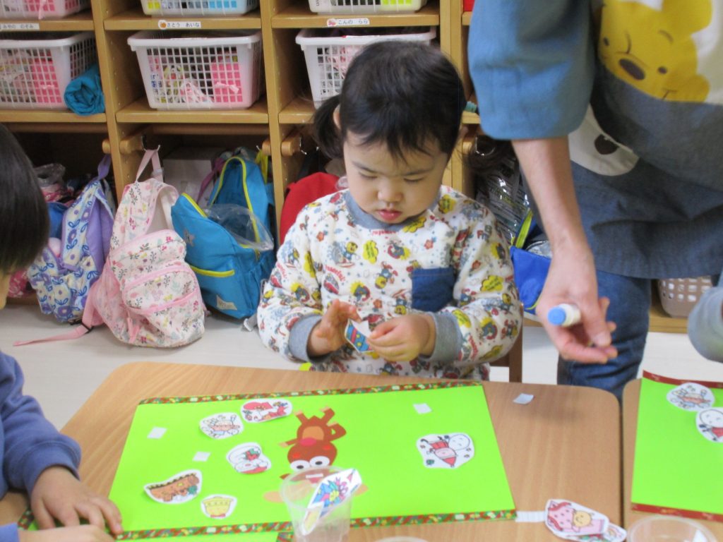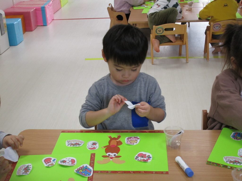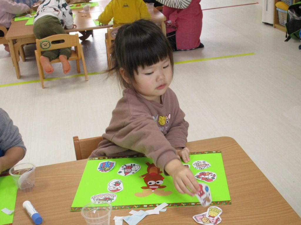 2歳児さんはバランスを取りながら上手に貼っていました(^_^)v