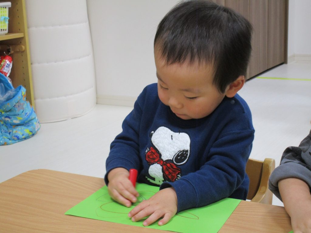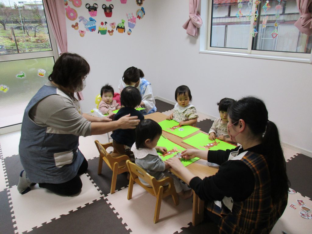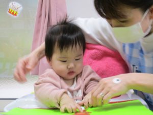 月齢の小さいお友達は先生と一緒に貼りましたが、