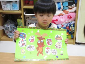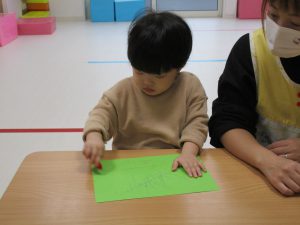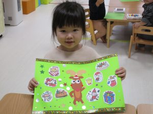 自分で台紙からはがし、上手に貼れました(*^▽^*)