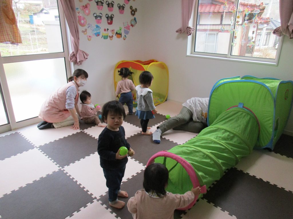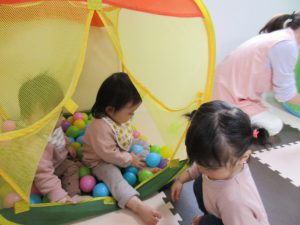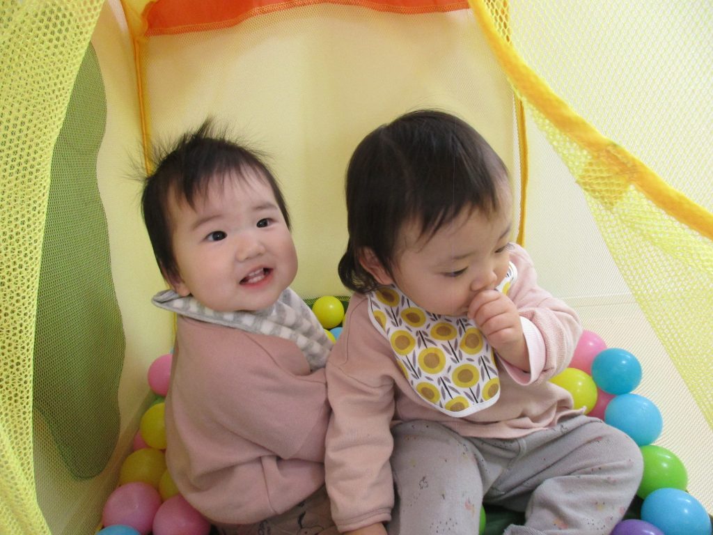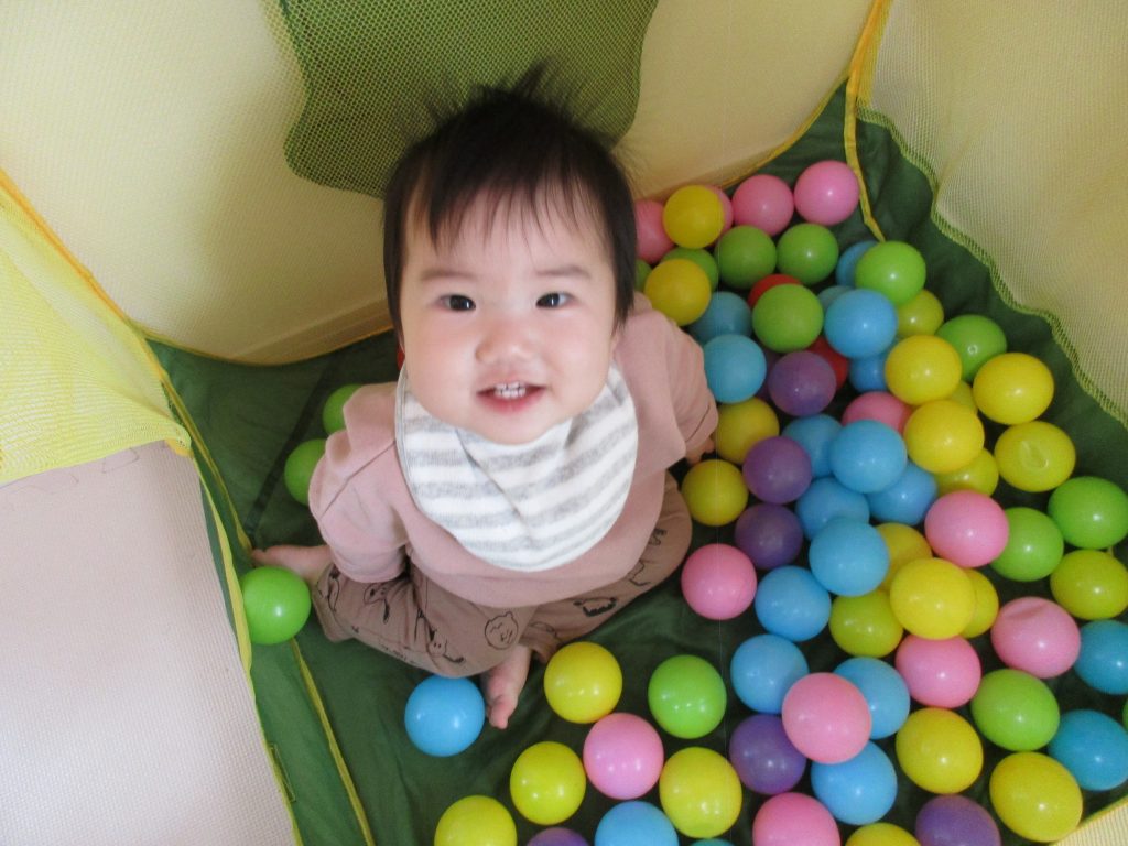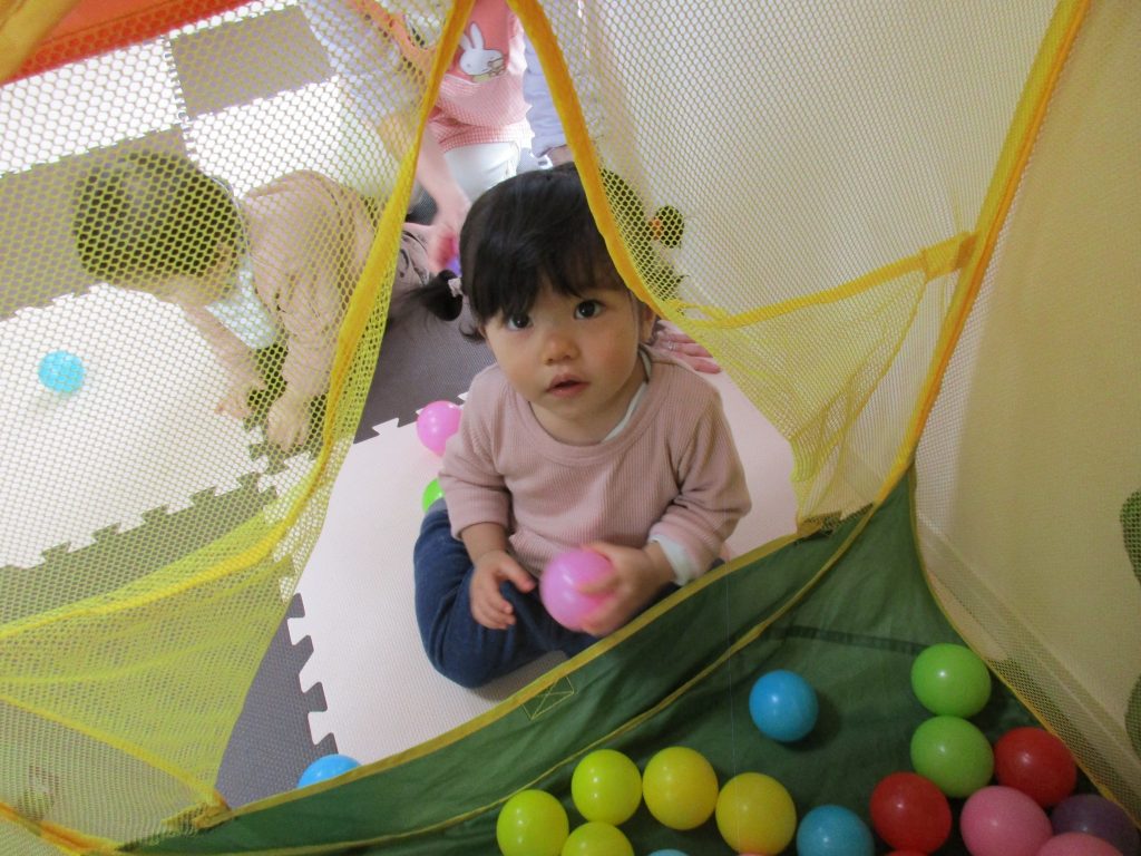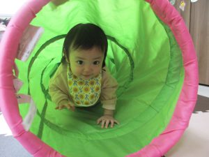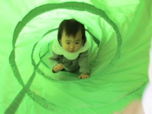 0歳児さんはトンネル・ボールハウスで遊び、