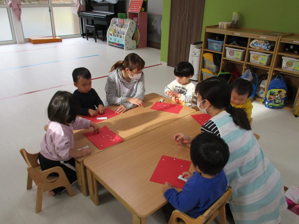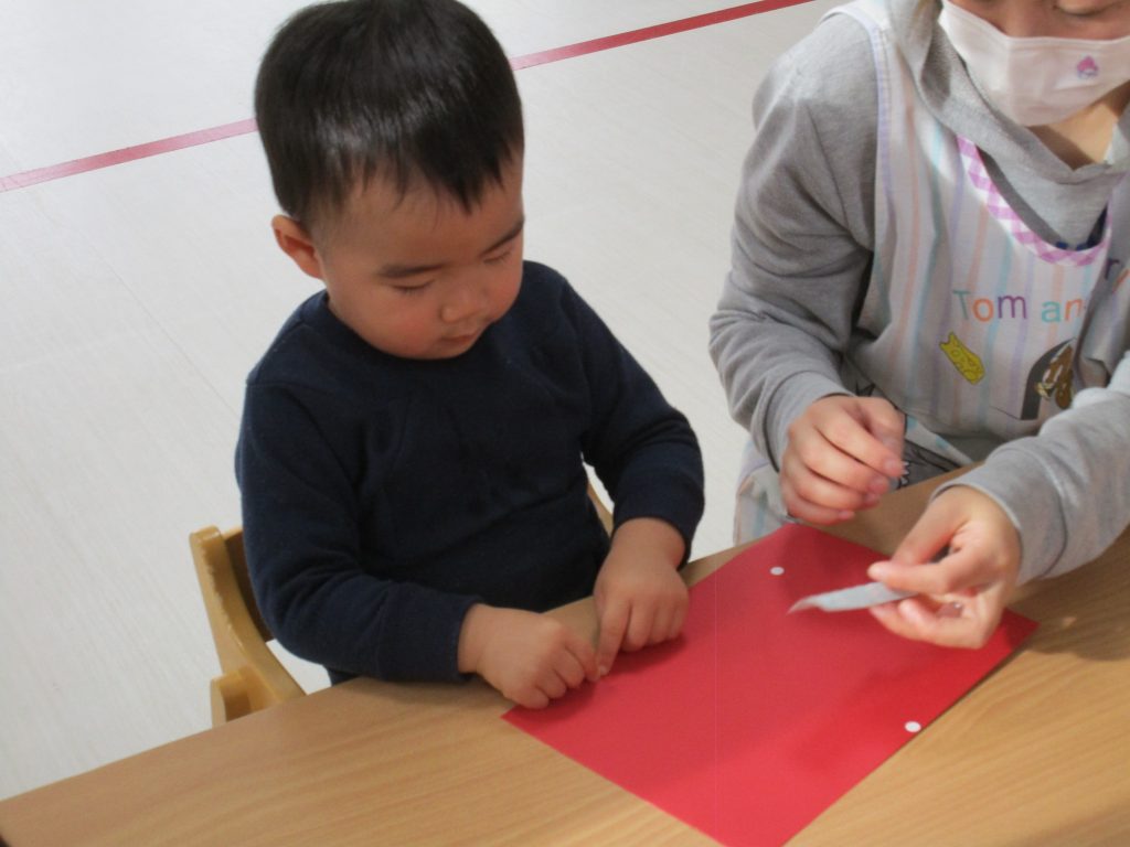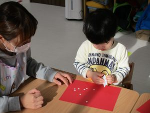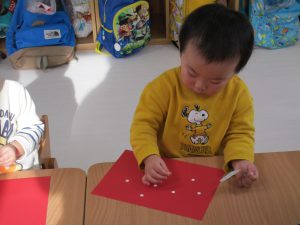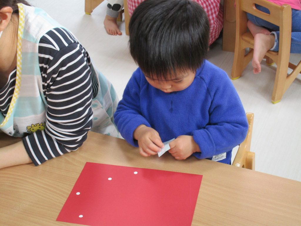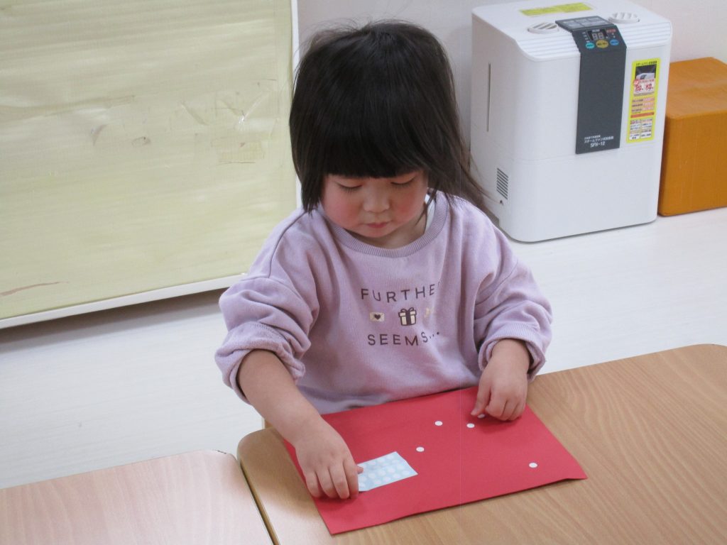 シールが小さ過ぎて苦戦していましたが、先生と一緒に貼って頑張りました(*^_^*)
