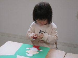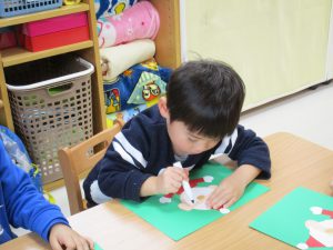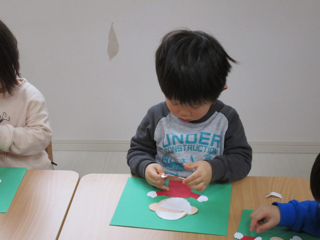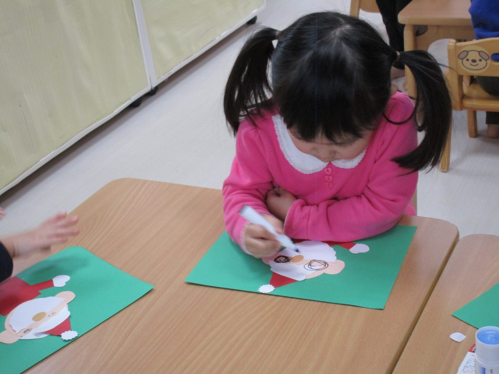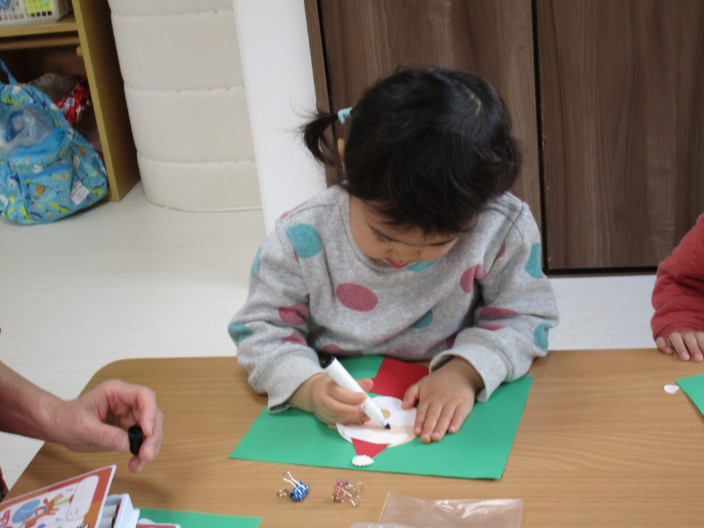 2歳児さんはサンタクロースの顔・ひげ・髪・帽子・鼻・ボタンを