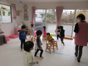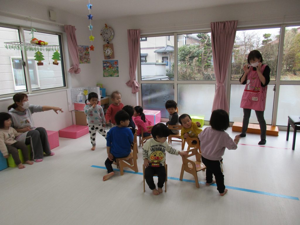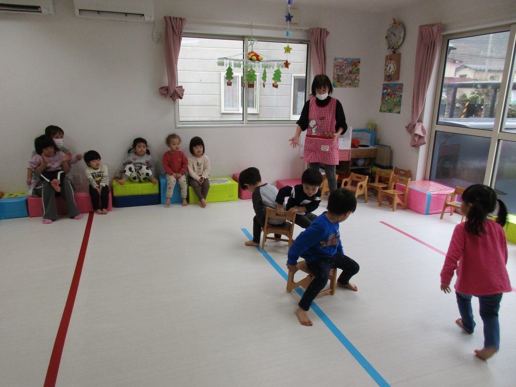 1・2歳児さんは製作の後はイス取りゲームをしました!!