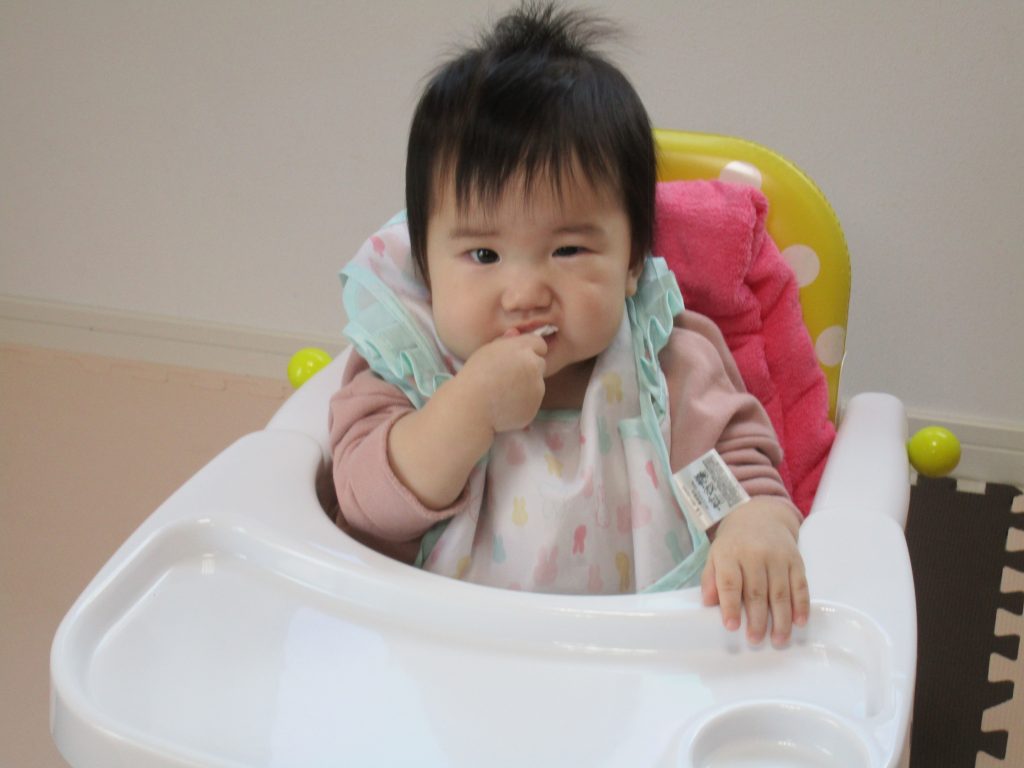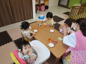0歳児さんはお部屋で乗用玩具やラミネートカードで遊びました(^_^)