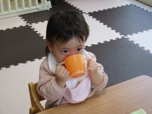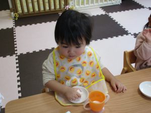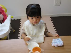嬉しそうに持ち歩いたり、2歳児さんは梅の種を見つけて