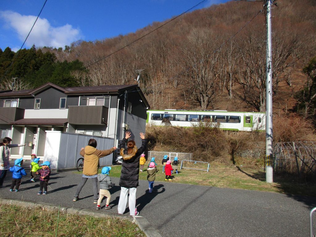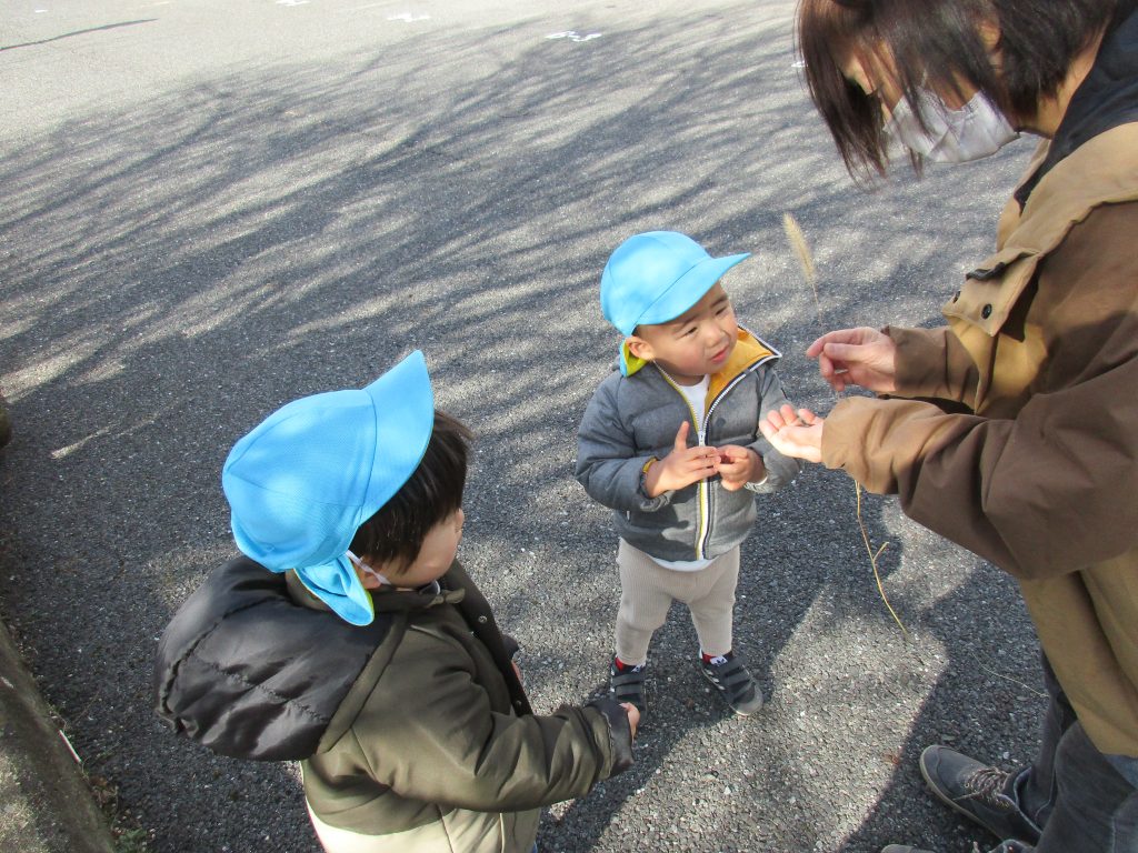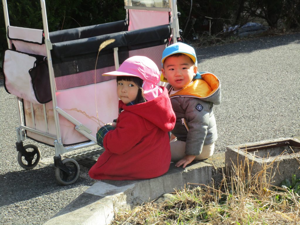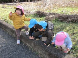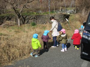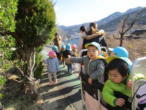 今日は暖かかったので1・2歳児さんはお散歩に出掛けてきました!!