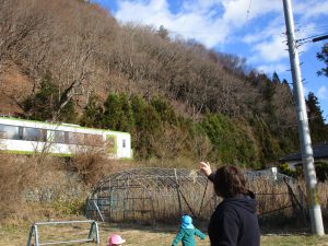 0歳児さんと2歳児さんは電車の見える空き地まで