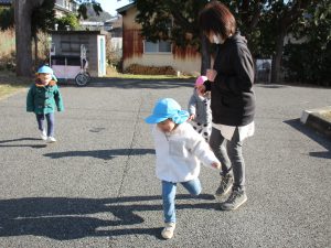 0歳児さんも2歳児さんの後を追いかけたりしながら