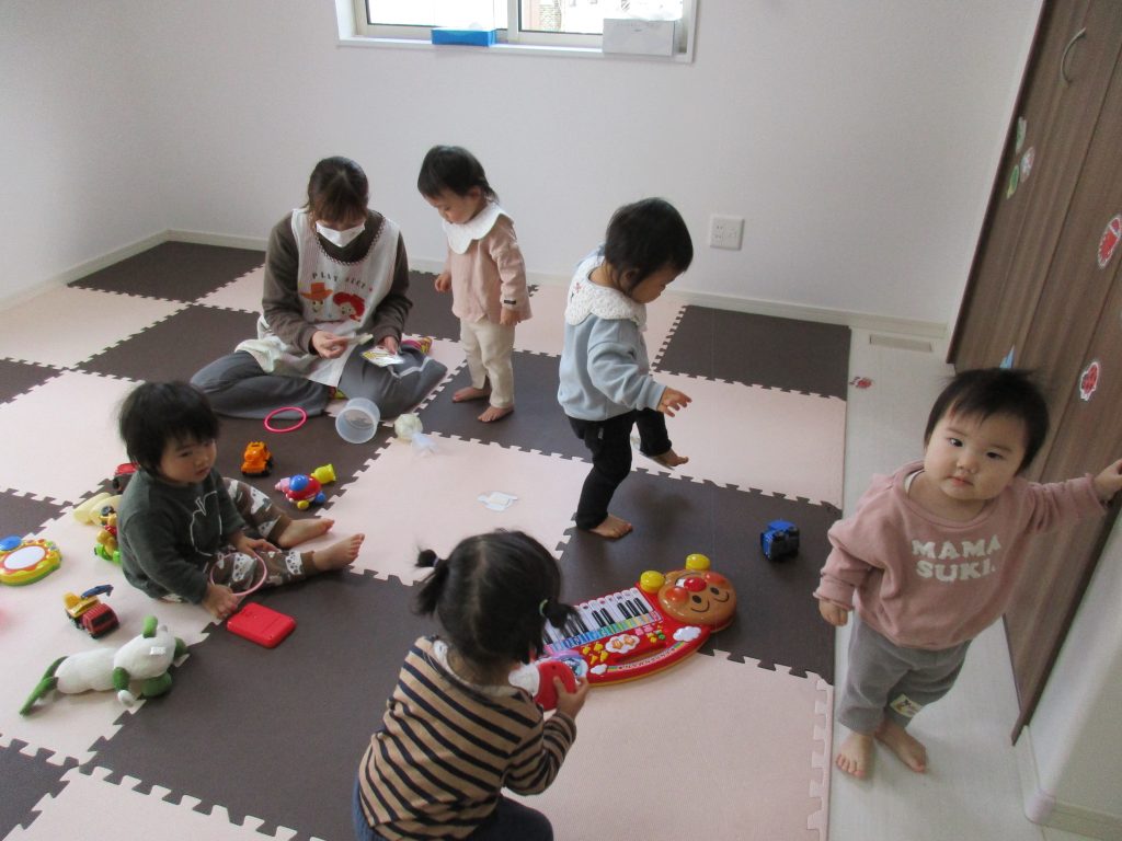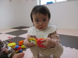 0歳児さんはお部屋で玩具やぬいぐるみで遊びました(^_^)