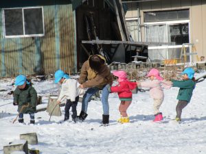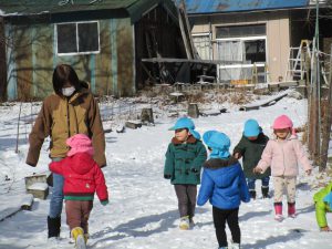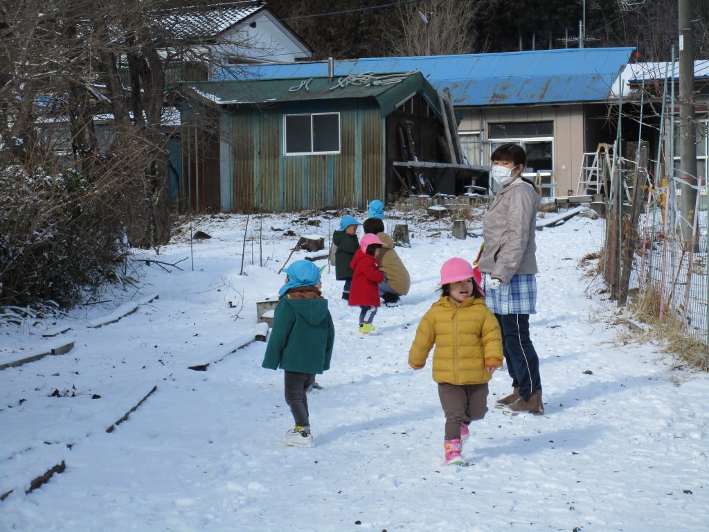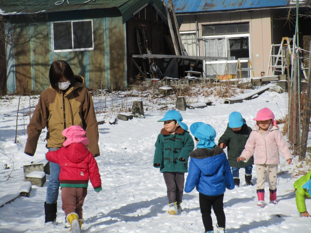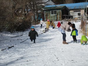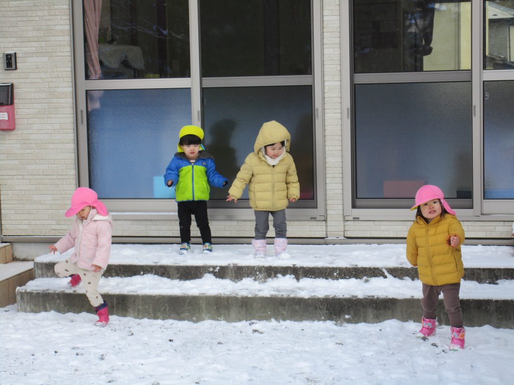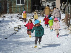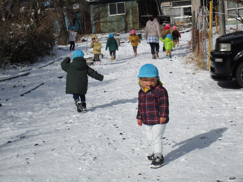 かけっこをしたり、寒さに負けず元気いっぱい遊んでいました(^_^)