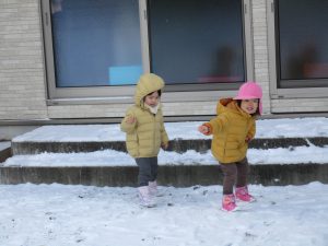 日中、お外に行くかどうか迷っていると、雪遊びをしたいという