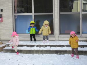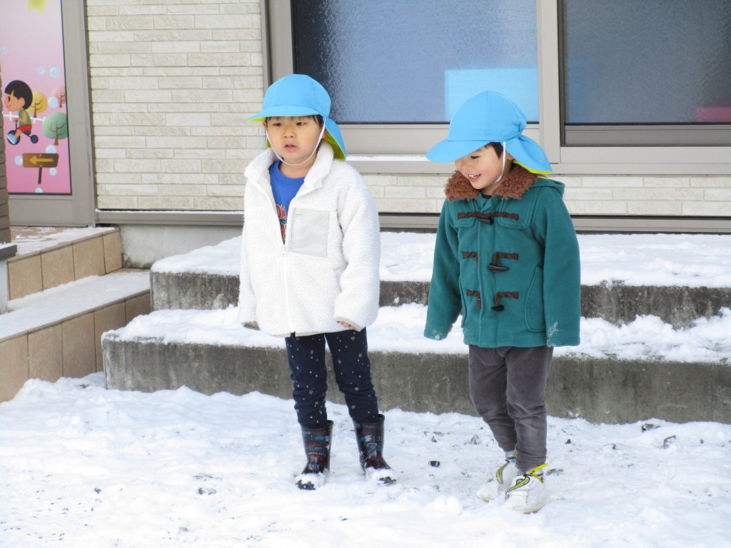 雪を触ってみたり、雪が積もっていてもいつもと変わらず