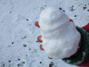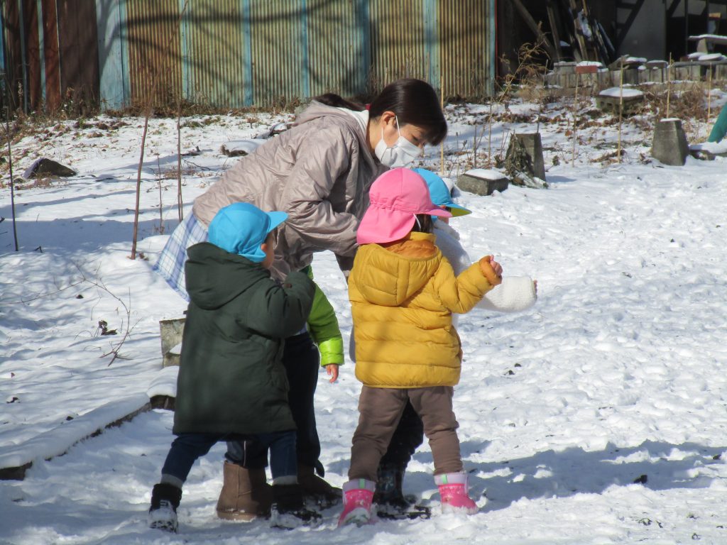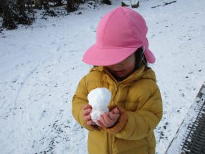 雪玉を作って雪合戦(?)したり、雪だるまを作ってもらい