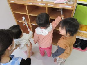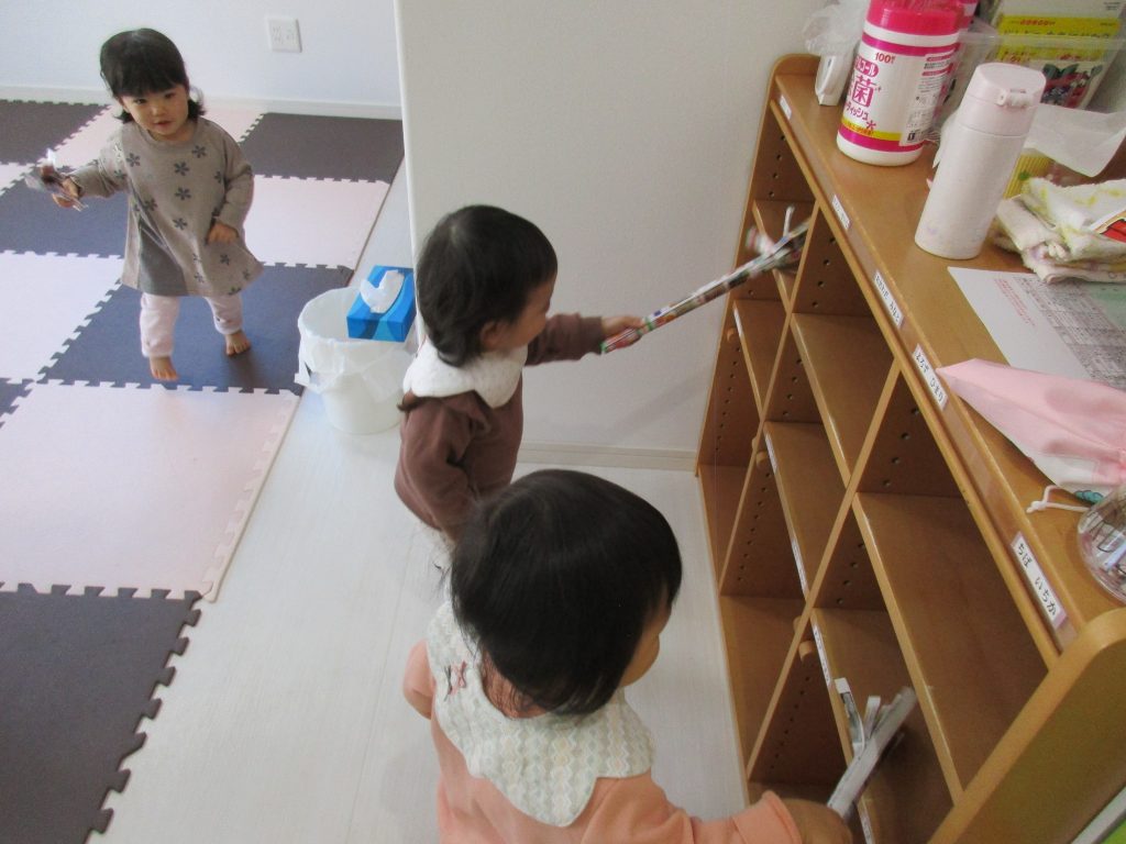 先生の真似をして上手にお掃除してくれました(*^▽^*)