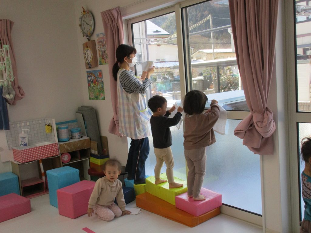 雑巾を使ったりしてみんなで一生懸命お掃除してくれました(*^▽^*)