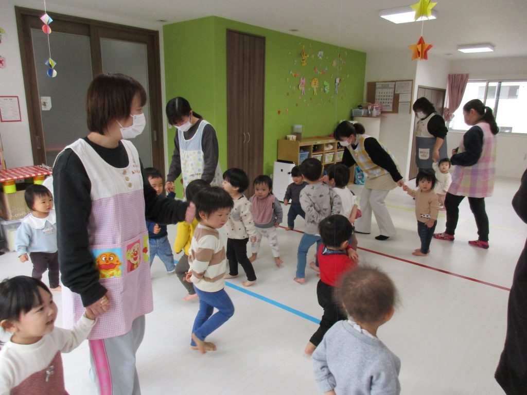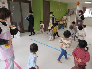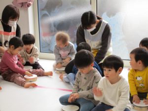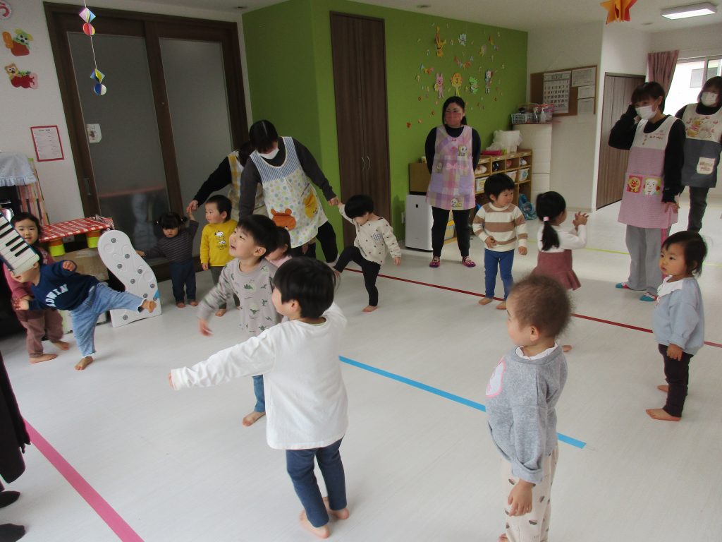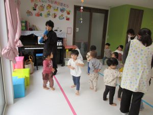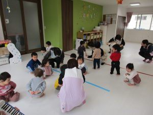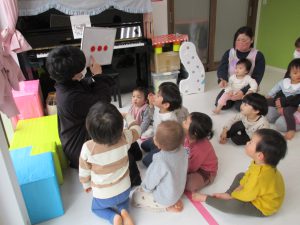 色々なお歌を歌ったり、リズム遊びをしたり、
