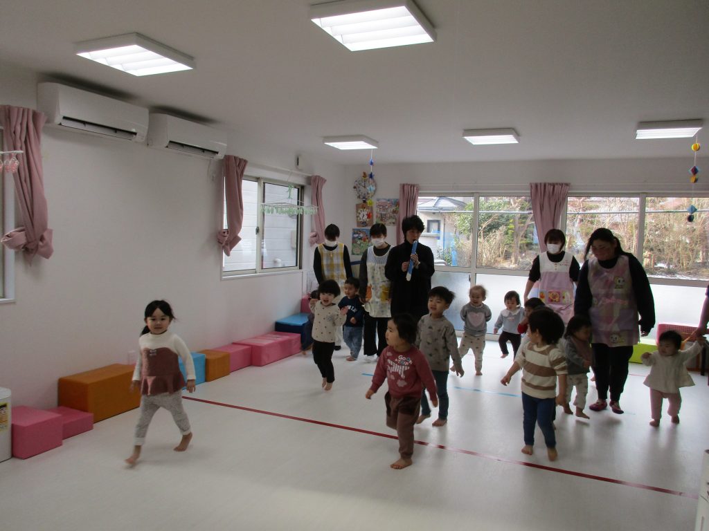 講師の先生が弾く鍵盤ハーモニカに合わせて歩いたり、