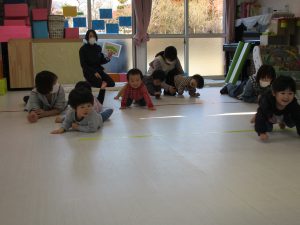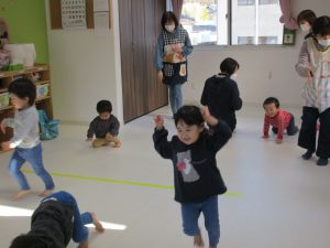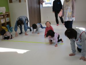 四つん這いやずり這い、ジャンプなどをしながら